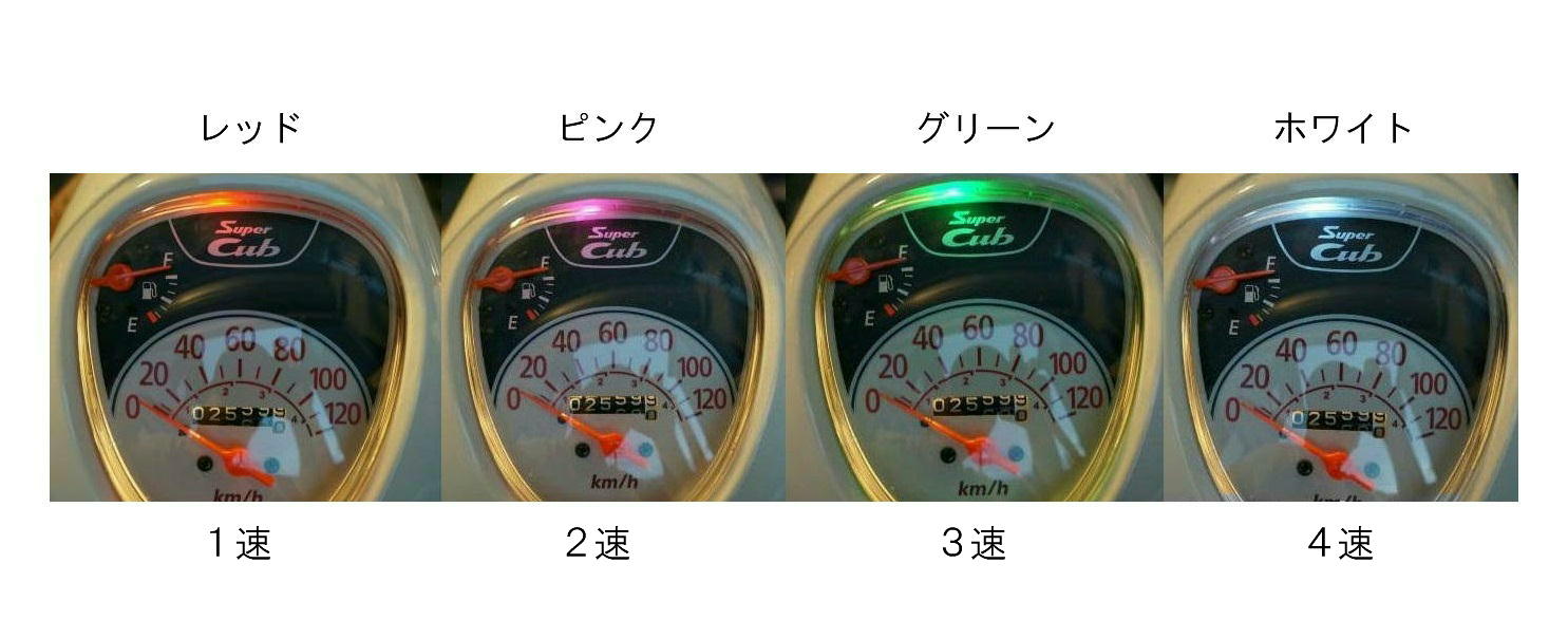1速:レッド、2速:ピンク、3速:グリーン、4速:ホワイト と選択した。