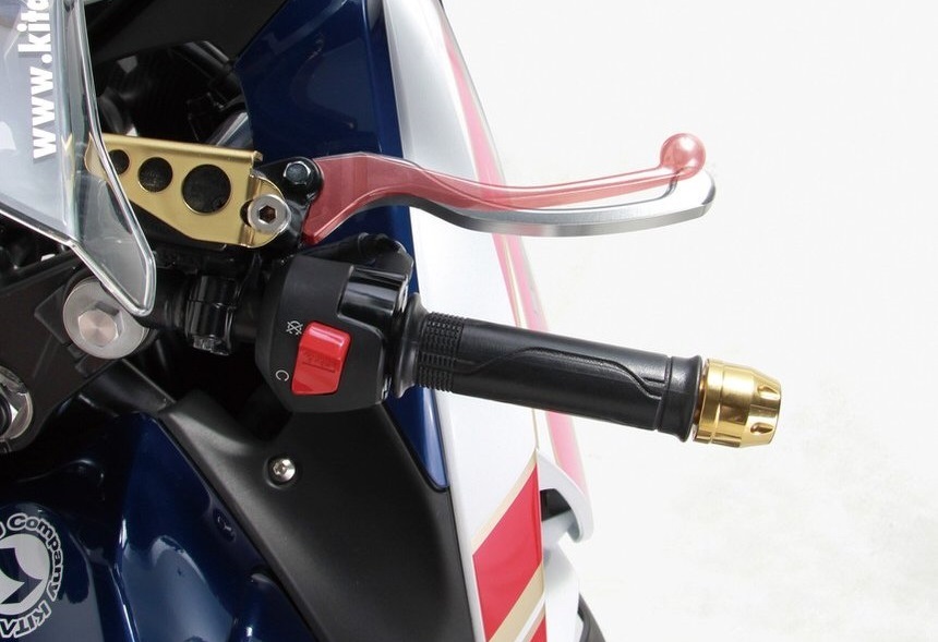 ハンドルの振動軽減を見越して装着。 アイテムの装着にも便利。
