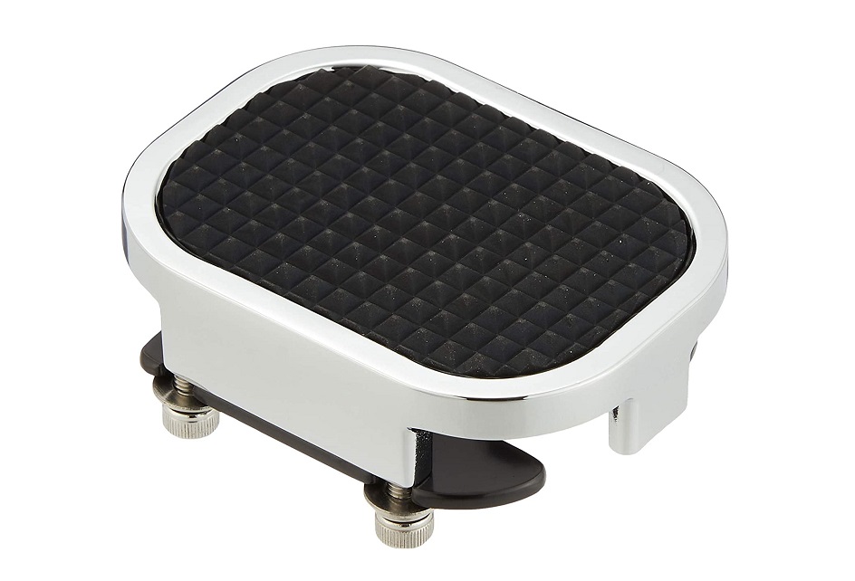 純正の細いものと違ってがっしりした作り。 乗っていても足の安定感が違う。