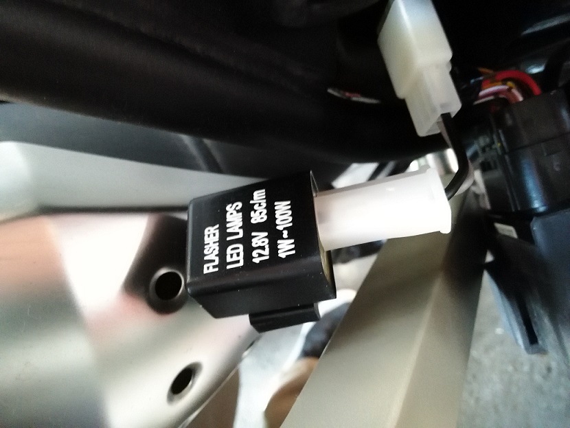 ウインカーのLED化に伴い、リレーを交換。 これを交換しないと高速点灯(ハイフラ)になる。