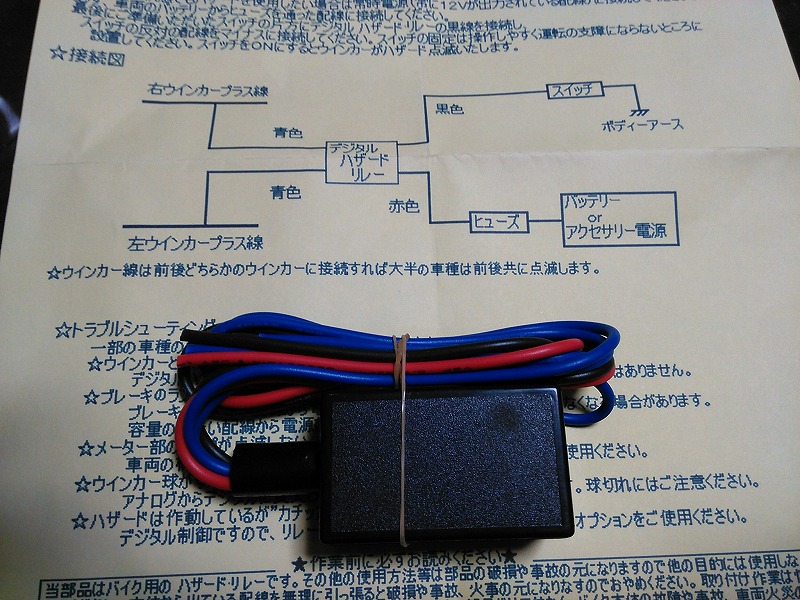 ウインカーのプラス線とボディーアースにつなげるだけのシンプルなもの。