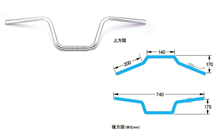 全長:735mm、高さ:165mm、太さ:22.2φ、素材:スチール製(メッキ仕上げ)