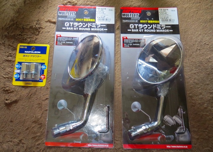 純正と同系の丸型に変更。 後ろが見やすく快適。