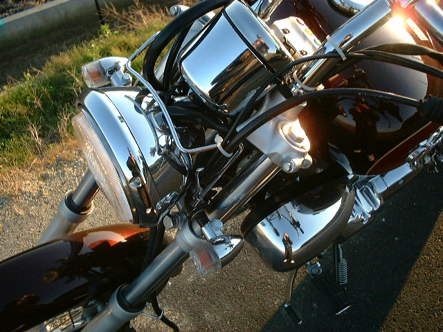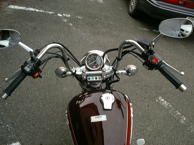 純正のチョッパーハンドル。 ミラーは変更済みです。 |
