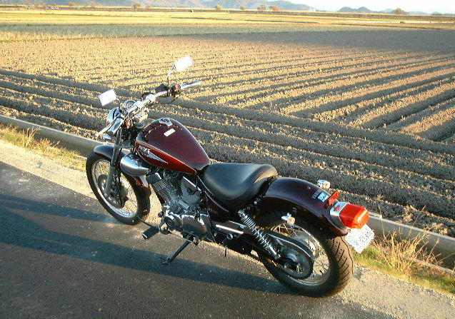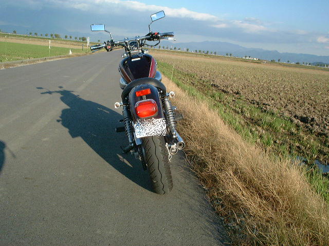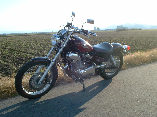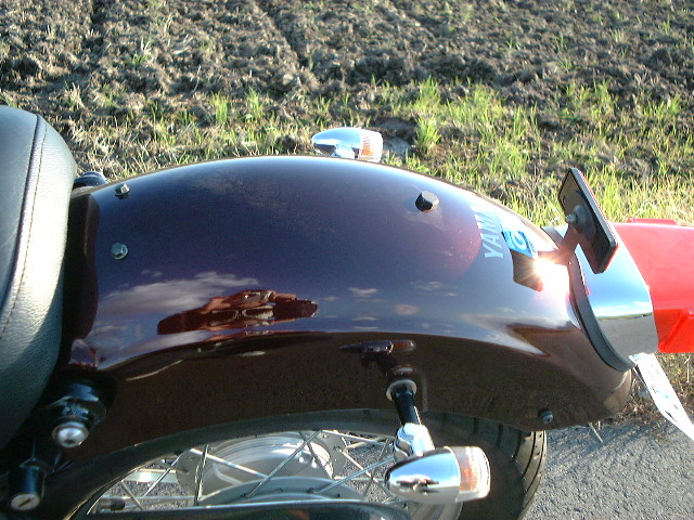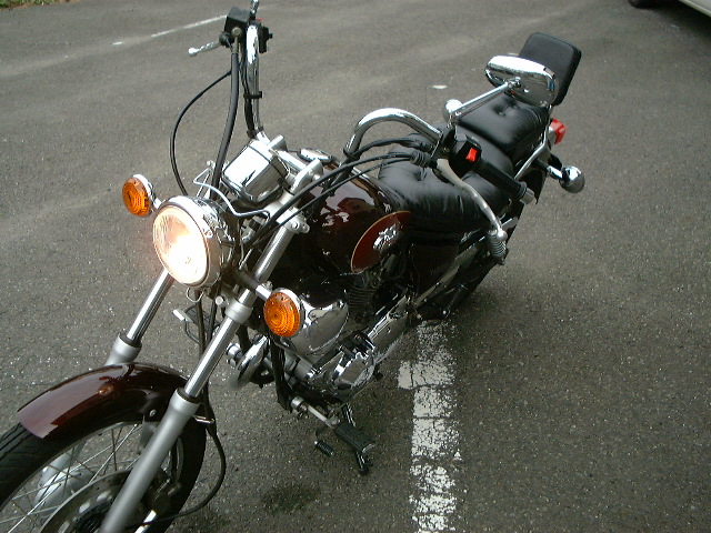 ビラーゴ250のシーシーバーを取り付けています。 ウインカー、弾丸タイプに変更する前の純正はこんなに大きなものが付いていました。 |