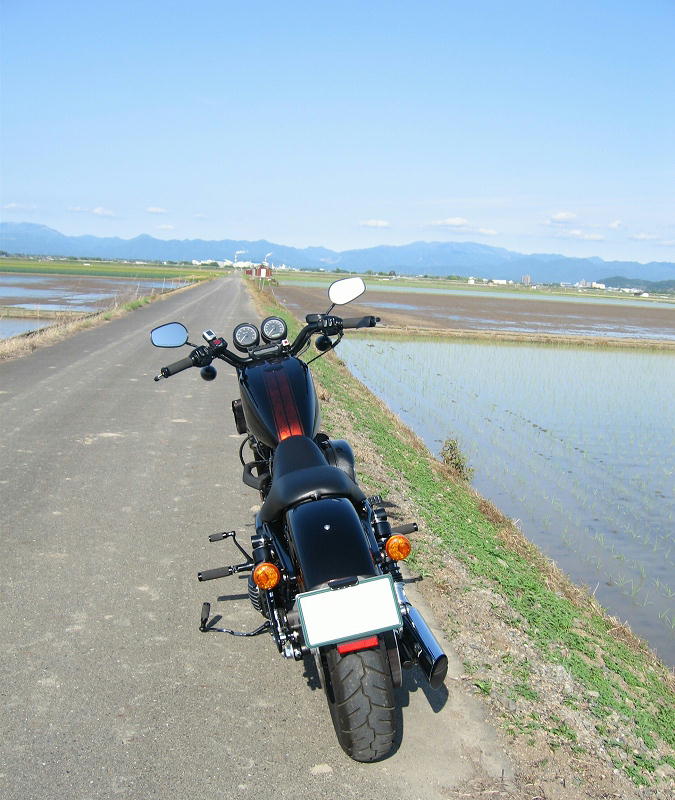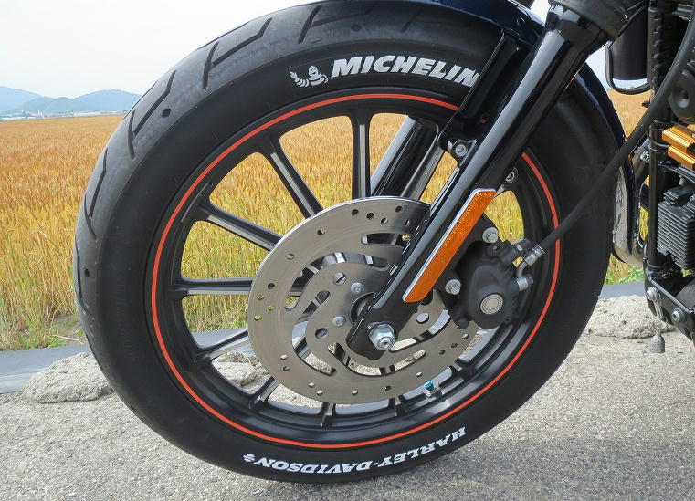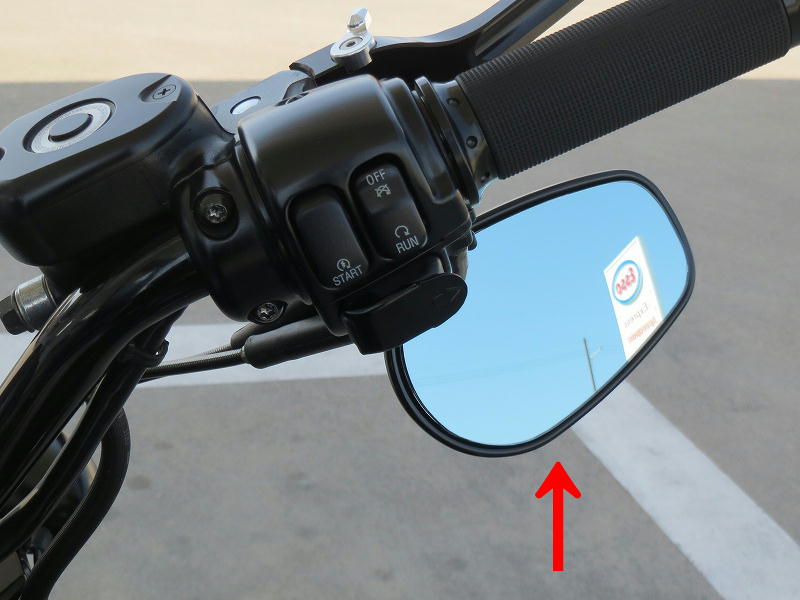 ミラーは「XL1200X」のように下向きの装着。後ろは意外と見やすい。