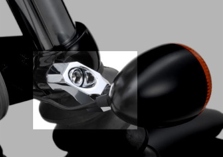 標準装備のミラーの位置を高くし外側へ移動させる。