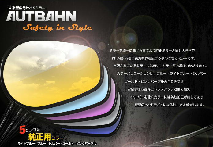 「AUTBAHN」広角ミラー 1000R(ライトブルー)