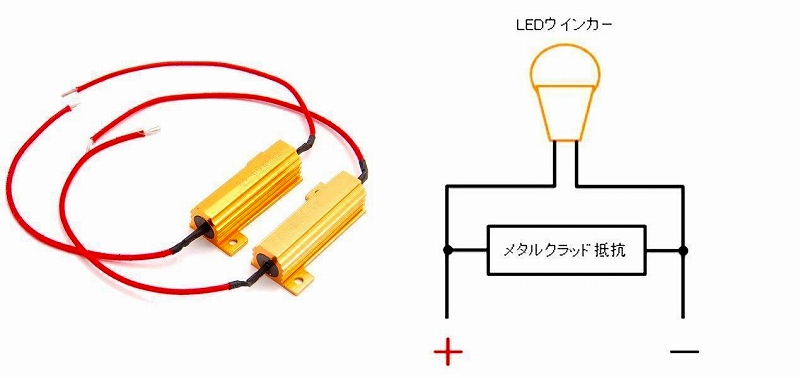 電球からLEDに交換した時の「ハイフラッシャー(早い点滅)」を解消する為の装着。