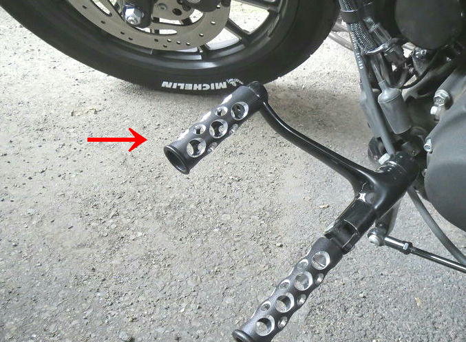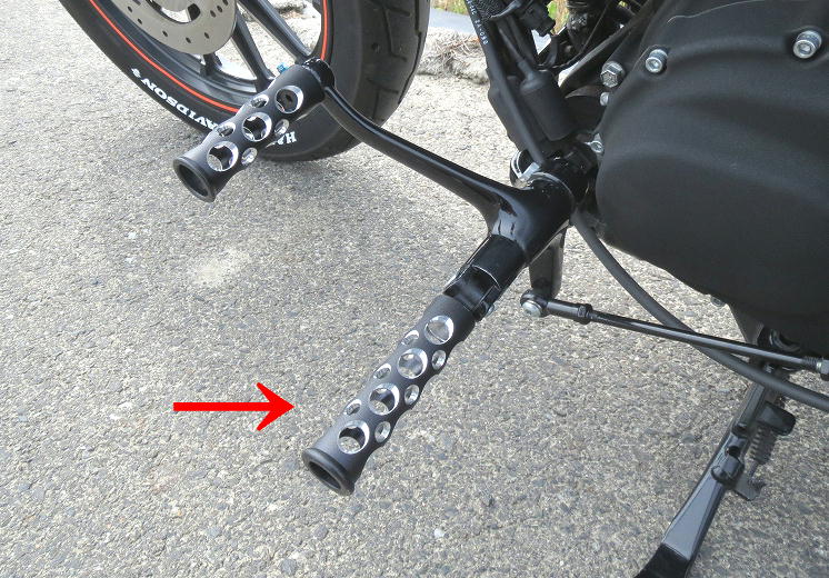 フロントだけじゃなく、パッセンジャーフットペグにも使用。