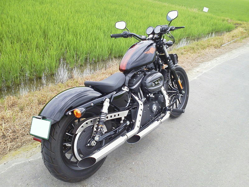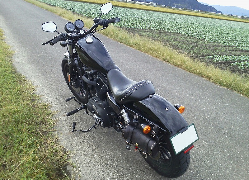 ナンバーをフェンダー上後方へ移動、レイダウン状態での装着。