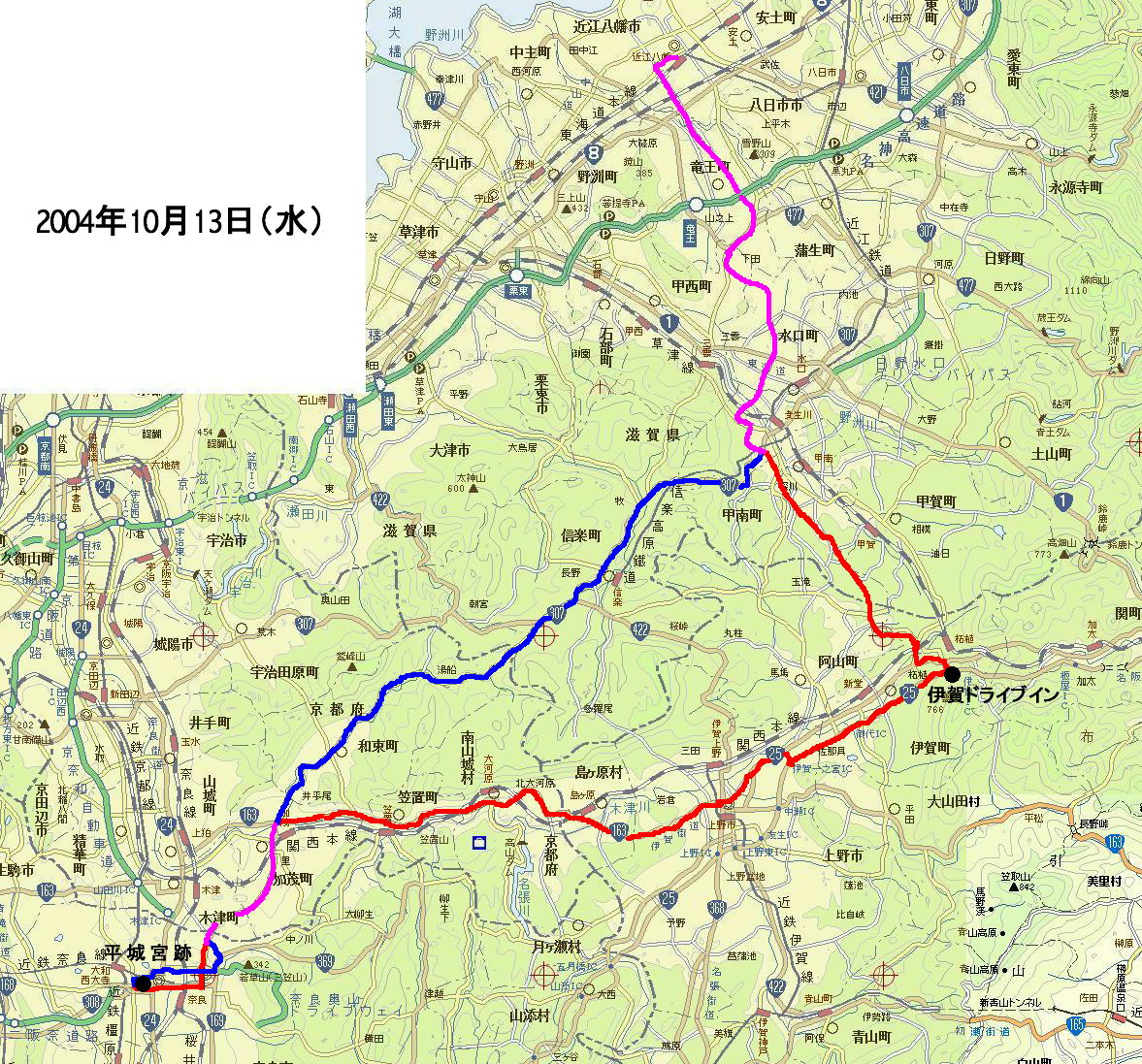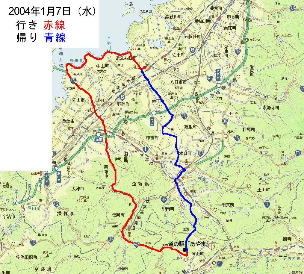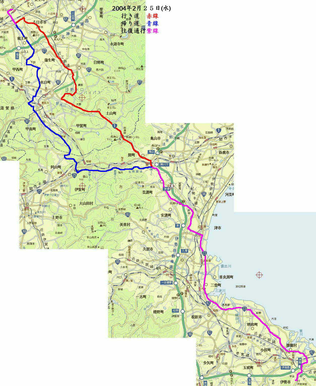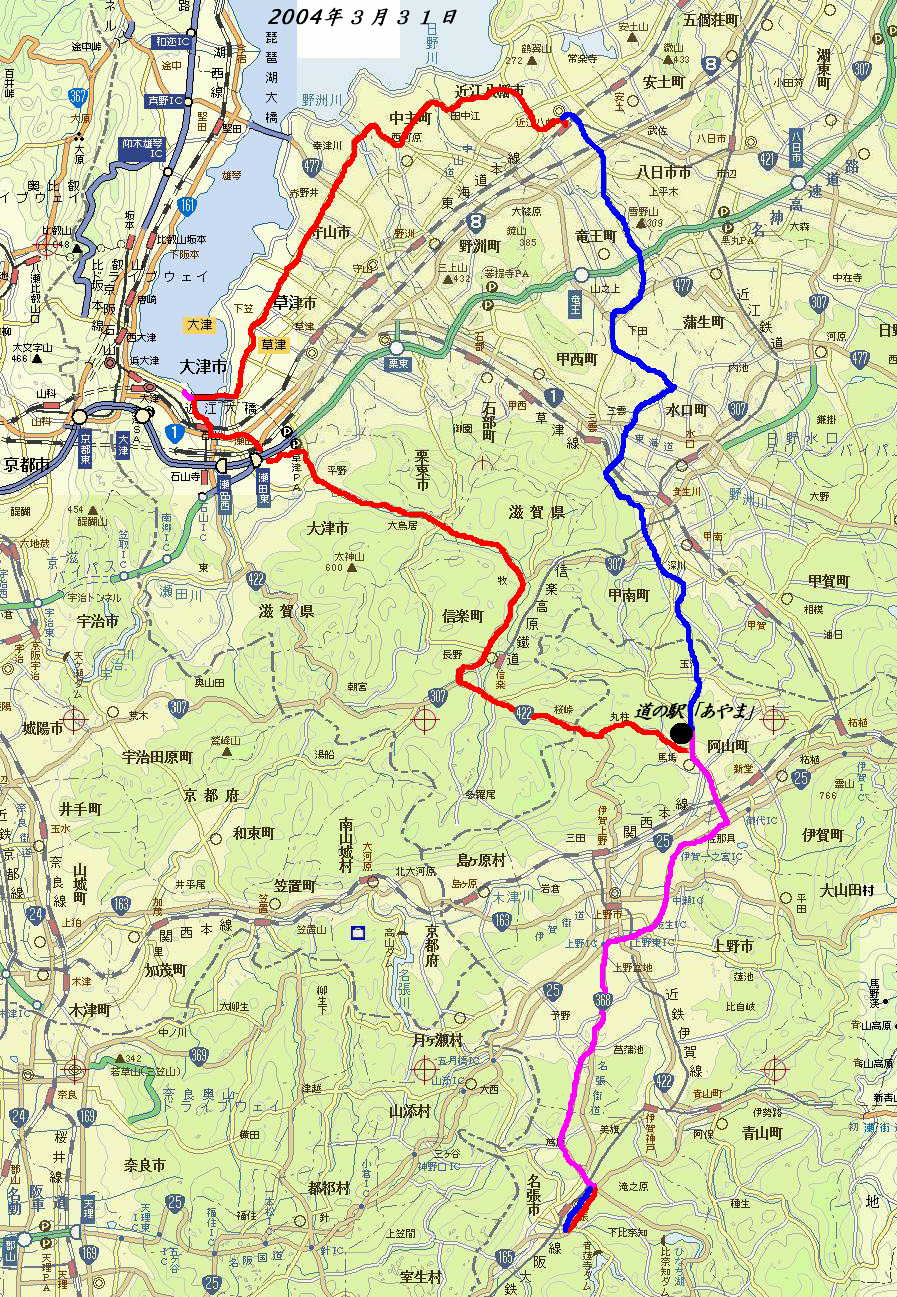 ルート:自宅→野洲町→守山市→栗東市→草津市→大津市→草津市→信楽町→阿山町(三重県)→上野市→名張市→(CDショップ)→上野市→阿山町→甲南町→甲西町→水口町→竜王町→帰宅