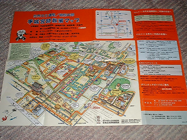 ホント、久しぶりのツーリングです。 目的地は決めず、10時30分頃に出発しました。 町内を走ると、金木犀の香がして気分爽快。(トイレの芳香剤じゃないよ) とりあえず、お昼が近いので伊賀町(三重県)へ向いました。 名阪国道「伊賀I.C」にある「伊賀ドライブイン」で昼食。(←安いからよく行きます。) 到着は11時45分 食券を買い、待つ事1分、いや30秒だった。 「5番さん!とん定、お待ちどう!」 席に座り、デジカメをサイドバッグから出していたら呼ばれたのでビックリ!(通常でも早いのに、それ以上のスピード!) 当方が注文したのは「トンカツ定食」 ワンコイン(500円玉)でもボリュームがあります。(*^O^*) いつ来ても500円(税込)で定食が食べれるから調法(思宝)していま〜す。 お近くを通られた際は、是非!! 15分後、再出発。奈良へ向いました。 名阪国道を使い、上野市方面へ。強風で、なかなか運転が難しかった。(^^; 上野市の手前「一ノ宮I.C」で下り、木津川と面した道路、国道163号を使い木津町へ 途中、笠置町(京都府)付近の木津川に掛かる沈下橋を撮影。(画像) 木津町から奈良市街地へ。 奈良市内から平城京跡へ向いました。 平城京跡は6年ぶり!(6年前に訪れた時、朱雀門が完成(復刻)した年) 「朱雀門」前で記念撮影。(画像) こう言う場所は、修学旅行生が多い。苦手です。(^^; (そういえば北海道の襟裳岬も多かった!) ボランティアガイドの方に「平城宮散策マップ」を頂きました。(画像) 付近を散策後、広い敷地内をバイクでトロトロ・・・・・。 ここから帰宅を急ぎました。 木津町、和束町を経由。 信楽で給油した後、水口町、竜王町を通り、帰宅しました。 到着は、16時20分