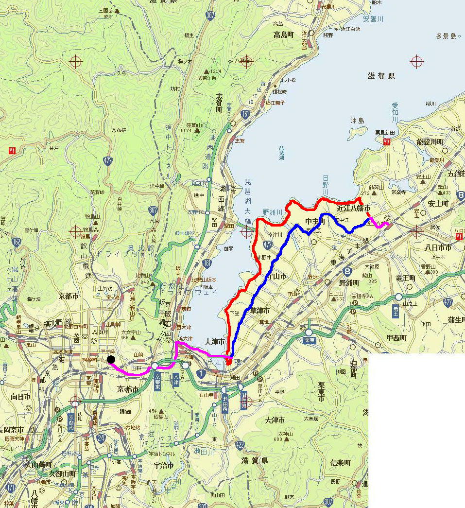 自宅→(琵琶湖湖岸)→野洲町→守山市→栗東市→大津市→信楽町→阿山町(三重県)→甲南町→水口町→甲西町→竜王町→帰宅