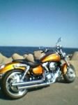 出発:11時00分。 ちょっと遅めの出発になりました。 朝から天気が良く、気温もこの時期としては高めで最高のツーリング日和になりました。 とりあえず行き先は、三重県の上野市へ。 いつも使っているルートではなく、旧道や新しく出来たバイパスを使ってみました。 初めて通る道を使った為、水口町付近で道に迷ってしまいました。恥ずかしい〜、けれど勉強になった。おかげで新しい道を覚えた。良しとしましょう! 一息付くために「道の駅・あやま」へ寄りました。何回も書いていると思いますが水曜は定休日です。(笑) ここでは、温かい飲み物を購入しました。(自販で)10分弱休憩した後、先を急ぎました。 阿山町からは名阪国道を使い上野市へ。 今回、ミーンストリークで初のツーリングです。当然の事ながら高速走行も初めて! ちょっと不安でした。 走ってみた感想は、DS11より前傾姿勢のため速度感は大きいですが、独特のスーポーティーな走りでストレスを感じなくスムーズに走れたと思います。 12時10分頃、上野市へ到着。ここで昼食! 何度か行っている定食屋に入りました。さすがお昼!店内はサラリーマンや工事関係の人があふれていました。 ここのお店はセフルになっており、好きな物を取り会計に持っていきます。 そのため、客の回転は速く、また注文後の待ち時間が無いため急いでいる時には最適な店です。 お腹一杯。さてと・・・・・ 当初、上野市でバイクを置き観光を楽しもうかと思っていましたが、あまりの天気の良さに走る事に決めました。 上野市から名張市を経由し海(太平洋)を見に行きます! 上野市から名張市までは新しくバイパスが出来ており、信号が少なく気持ち良く走れる道です。(お勧め!) 名張市から国道165号線を使い、三重県久居市へ向いました。 この道は、途中に峠越えがあり頂上付近から“青山高原”へ向う道があります。 青山高原へ行くと、津市や松阪市、天気次第では太平洋が望めます。 今回は時間の関係上、寄りませんでした。 この場所は、数年前にバルカン800クラシックで来た事があり、その時は天気が良く最高の絶景だった事を思い出しました。 順調に走っていたのですが、久居市へ入ったところで少々混雑・・・・仕方ないな〜(笑) 渋滞が緩和し国道165号線を直進すると、とある造船場へ着きました。 当方にとっては懐かしい場所です。(秘密.....笑) 今日は、デジカメを忘れてしまった為、画像は携帯の物を使いました。 ミーンストリーク越しの太平洋.....画像が小さい! 景色が良かったので10枚ほど撮りました。しかし家に帰り画像をチェックしたところ、あまりの小ささにショック! 忘れた事、後悔しています。 国道23号線を使い津市へ! 津市内は、国道23号線のバイパスが出来ており旧の市街地は通らないのですが、今回あえて海側の旧道を使いました。 さすがに狭い! 大型トラックでは難しい幅だった。バイクの特権で細くても余裕 (*^-^*) 津市から伊勢別街道と言われる道を使い関町へ 関町には大きなドライブインがあり、そこで休憩&土産の調達。(笑) 休憩を済ませバイクへ戻ると一人の中年男性がバイクを見ていた。 近づくと「良いバイクやね〜 新しいカワサキのバイク!?」って言ってきた! 「そうです。バルカン1500ミーンストリークです」と言うと、「私も、バルカン800に乗っているんですよ。今は寒いから10日に1度エンジンを温めるだけ!」との事。 その後、バイク話が弾みました。 数分後、「気をつけてね!」、「ありがとうございます」と言って別れました。 見知らぬ人との会話、短い時間でしたが楽しかったです。(*^-^*) あ!そうそう。その人は、かなりミーンストリークが気にいったのか、欲しそうにされていました。ありゃ、買いそうだな。 国道1号線を使い土山町へ。「道の駅・つちやま」へ寄りました。 久しぶりに寄ったのですが、店が広くなっており、うどんなどの軽食が食べれるようになっていました。 トイレを済ませ、無料サービスの土山茶をいただき、体を温め再出発です。 なんか買えよ〜!って言われそう。 走り出したのは良いんですが、道は渋滞、ノロノロ運転!クラッチの手が痺れる。うゥ〜! このバイク、クラッチが硬い。(短所) 良く走る道なので抜け道を使い、渋滞は難なくクリアー(笑) その後は、スムーズに走れ帰宅しました。 帰宅:16時50分
