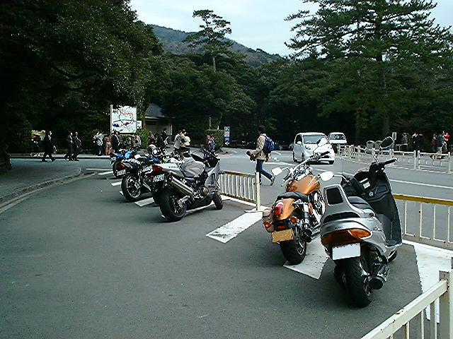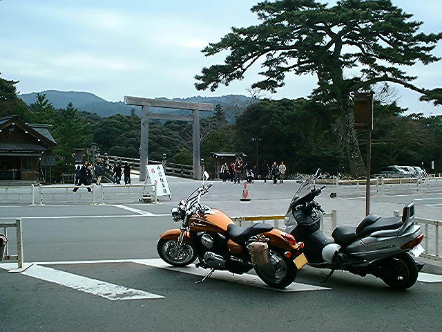 今回は、久しぶりに伊勢へ。 出発:9時45分 いつもと変化の無い出発時間! 前日の計画を立てている時は、早く出ようと思っているのですが、ついついこの時間帯になってしまいます。(笑) デジカメは忘れず持っていきました!! 天候は、晴れているもののうす曇状態。 とりあえず国道1号線に出るため、八日市市&日野町経由で走り出しました。交通量は少ないのですが、信号がちょこちょことあるため思い通りに走れなかったです。最悪な事に、国道1号線が目前の小さな峠(布引峠)で道路拡張工事のため通行止めになってました。 誤算! 時間のロスです。 ぐる〜っと遠回りして国道1号線へ。 R1は平日なので交通の渋滞も無くスムーズに走れました。鈴鹿越えは、アスファルトの破損が多く気を付けて走らなければいけない場所です!(注意点) 関町に入ったところで、先週も走った伊勢別街道(県道10号線)を津市へ向かいました。ブーン! 通常、津市から国道23号線を使って伊勢市に向うのですが、今回新しく出来た「中勢バイパス(国道23号線)」を使ってみました。まだ完成している区間は短いですが、信号が少なく気持ち良く走れる道です。 現在は、伊勢自動車道の津I.C付近まで完成(通行)しています。これが伊勢まで出きれば、相当な時間の短縮になるでしょうね! 待ち遠しいです。 バイパスの終点場所から、国道23号線に出て松阪市経由で伊勢市に入りました。 国道23号線の突き当たりは、伊勢神宮(内宮)です。 到着は12時25分 駐輪場(画像参照)にバイクを止め腹ごしらえ。 名物の伊勢うどんを食べに「岡田屋」さんへ入りました! 注文は「伊勢うどん定食」700円(画像参照) 独特のうどんです。 麺は太くコシがありません。汁は黒く少なめ、鰹ダシが効いています。決して塩辛くありません。(笑) 食後、おかげ横丁を散策しました。 この頃になると、天気も良くなってきて青空が見えてきました。 さすが伊勢、相変わらず観光客は多いです。 バイク用に着込んでいるので散策にはちょっと辛いです。暑い う〜! お土産を買い再出発! 伊勢名物と言えば・・・・・です! 生姜糖!? 来た道の国道23号線を使い津市へ。 途中でガソリンスタンドへ。これ1500!!!だって。ハハハ 約10L給油 燃費の計算したら1リッター辺り17km 悪い。(>_<) 津市から県道10号線(伊勢別街道)で関町へ。 関町で一服。 先週と同じ所(関ドライブイン)。(笑)今回は、旧バイカー(60代)2名との会話でした。良く話しかけられる。(*^-^*) DS11の時は、そんなに話しかけられなかったな〜(^^; 10分程度休憩を取った後、名阪国道を使い伊賀町柘植へ。国道なので法定速度は60km/h しかし一般車は90前後で走る。お〜怖! 柘植からは水口経由で走りなれた道を帰りました。 帰宅は16時55分で〜す。