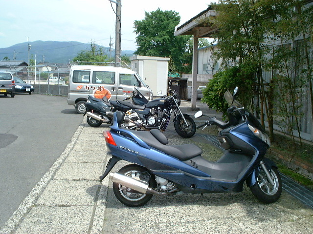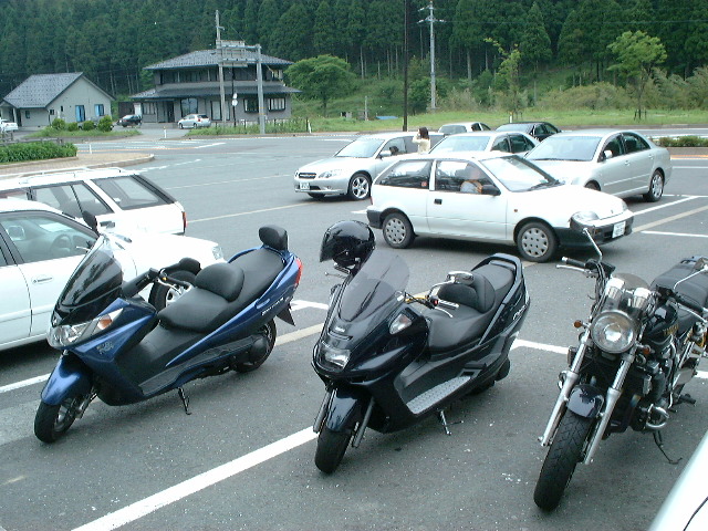 今日は、休み返上で仕事をしていました。 順調に仕事が進み、午後から時間が出来たのでTWに乗り出かけました。(この時点では遠出の予定無し) 出発は13時45分 最初、日野町付近をブラブラと走行。先日、行った所を何気に走っていました。 時間も有るし、天気は最高! 急遽、峠越えを決行することに! ここから近いのは、永源寺町から鈴鹿山脈を越えての三重県側へ出るルート。 幸い、永源寺町まで6kmで行ける地点に居る。 10分程度で永源寺町へ。 夏休みのため、泳ぎにきている人で賑わっていました。 出会うバイクとピースサイン!! 久しぶり! 坂を登るたびに気温が下る〜! 半袖では寒かった。(^^; 頂上で、一服&携帯で撮影。 三重県側の地名が「市」になっていた。 町が合併したらしい。 細く壊れた舗装を、下る。(三重県側、何とかしてくれ〜) 無事下山。 ハハハ 国道306号線を使い、鈴鹿市・亀山市・方面へ 信号少なく、ツーリングにはGOOD ※ 家から100kmの地点で給油。(燃費の計算のため)この後、メーターのトリップの故障に気づく!(距離を刻まない) 亀山市から国道1号を使わず、市街地へ (これがそもそもの間違い!) 方向がわからなくなった。 道路標識が全く無い。 数分間・迷子 (市役所の前を走っても道路標識が無いんだもんね。話にならん!) 結局、国道1号線を見つけ走った。(←はじめから使えよ〜) 関町へ入り、ちょっと寄り道。 信号を曲がり、「関ドライブイン」で休憩&土産調達 再度、国道1号線を使い土山町へ すでに17:30を越えている。腹減った〜 帰宅を急ぐ。 以前、道路拡張工事の為、通行止めされていた所(布引峠)が完成していた。 渋滞無くスムーズに帰宅。 到着は18時45分。