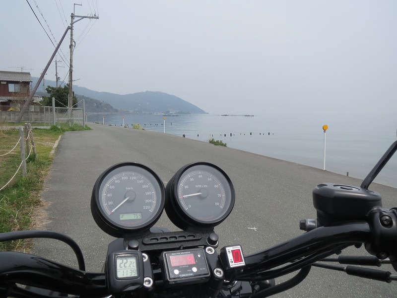 <ルート> 自宅→加茂町(ガソリンスタンド)→(湖岸道路)→東近江市→彦根市→米原市→長浜市→(国道8号線)西浅井町→ 敦賀市→(国道27号線)→若狭町→かみなか亭(昼食)→(国道303号線)→今津町→(湖岸道路)→道の駅「しんあさひ風車村」→ (国道161号線)→北小松(撮影)→琵琶湖大橋→(湖岸道路)→守山市→野洲市→加茂町(ガソリンスタンド)→帰宅 <データー> 走行距離:214.1km 燃費:約29.5km/L 天気:快晴 気温:12〜24度 朝昼の温度差アリ ガソリン(1L):163円(ハイオク) 使用バイク:XL883N ILON