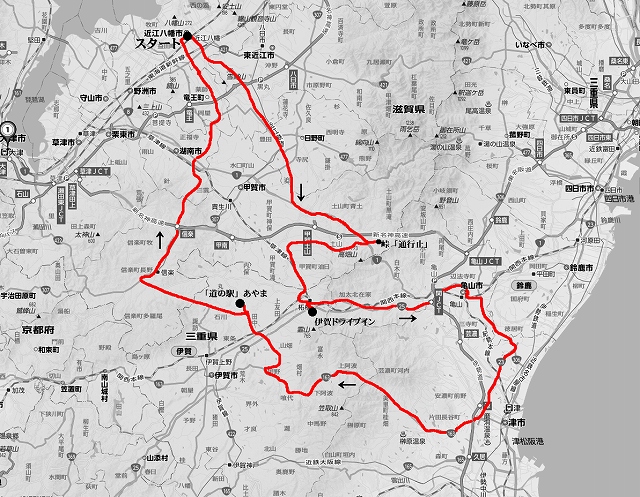 <ルート> 自宅→農免道路→竜王町→水口町→貴生川駅前→甲南町→甲賀駅前→柘植駅前→伊賀ドライブイン →県道50号線→「甲南IC」通過→国道1号線(バイパス)→栗東市→草津市→朝鮮人街道→旧東海道(瀬田) →建部大社→瀬田の唐橋→近江大橋(無料)→琵琶湖湖岸道路→道の駅「草津」→湖岸道路→ 守山市→野洲市→帰宅 <データー> 走行距離:149km 天気:晴れのち曇り(PM2.5? 空は灰色) 気温:8度〜18度 使用バイク:XL883N ILON