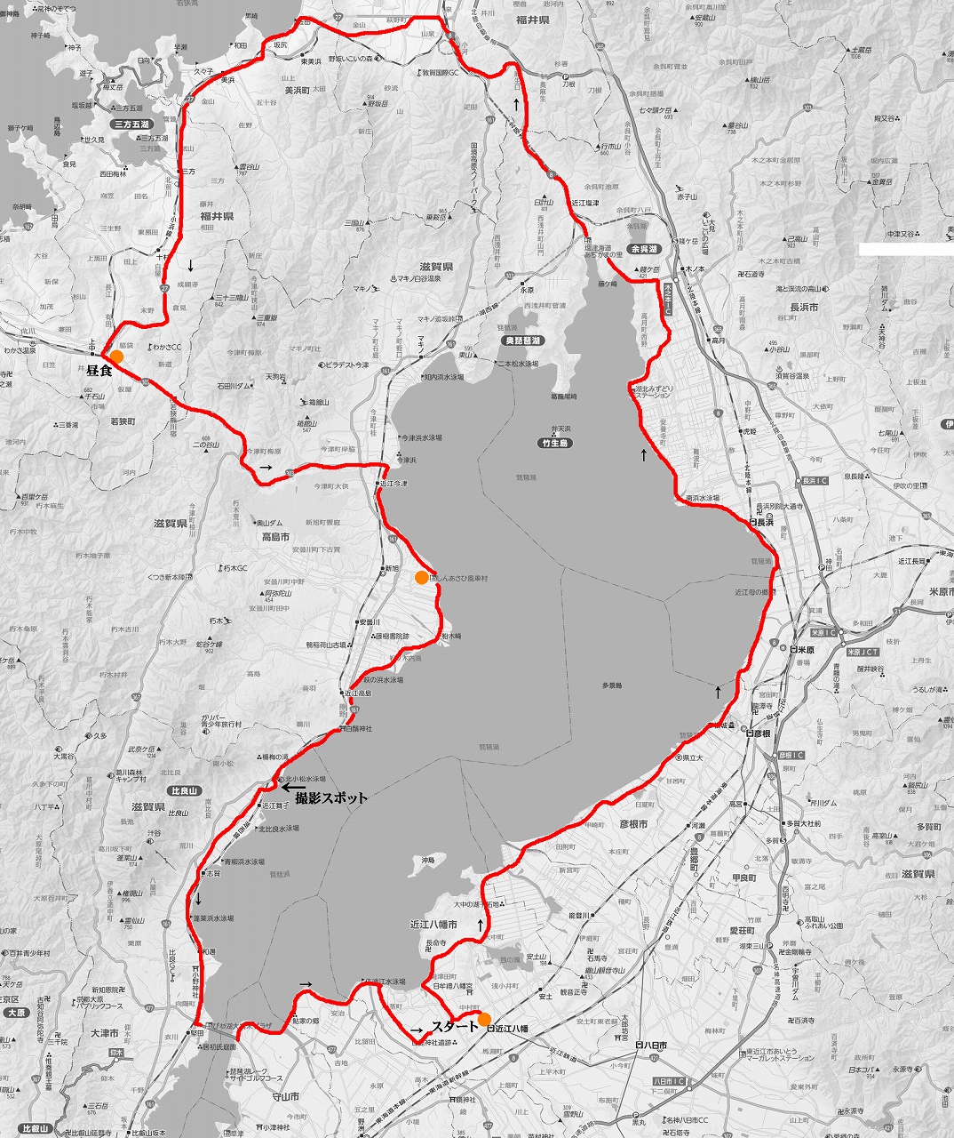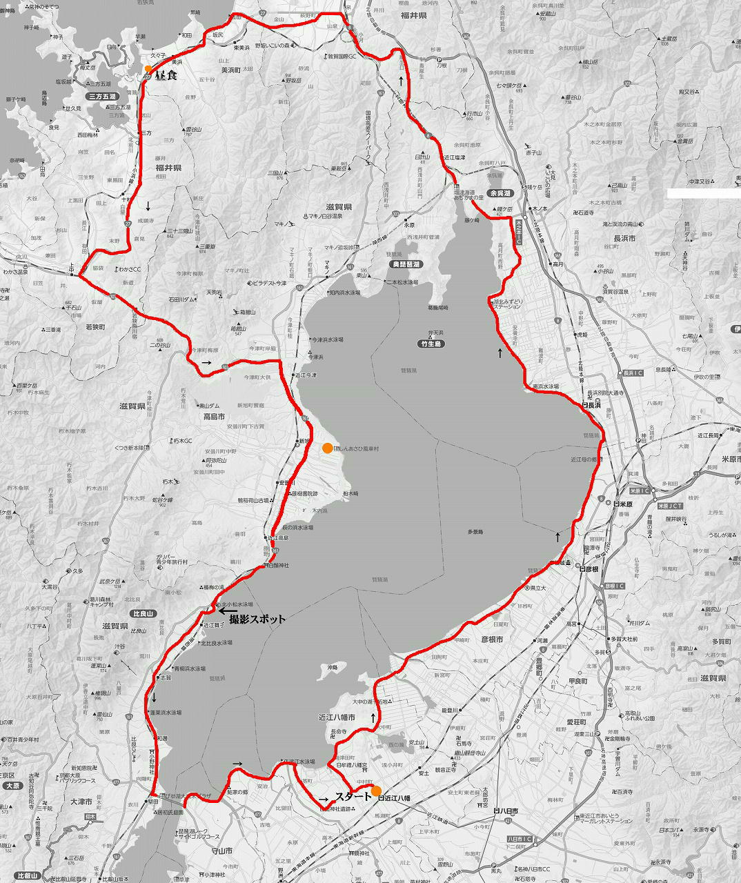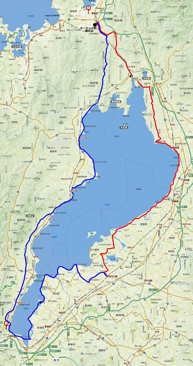 12時40分:出発 いつものGSでガソリン満タン。 琵琶湖一周は時計回りで。 途中、道の駅「みずどりステーション」1分程度休んだだけでノンストップ。 再度、自宅近くのガソリンスタンドへ寄って給油。 5.13L入る。 16時20分:帰宅