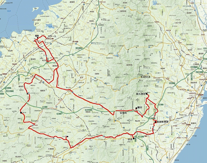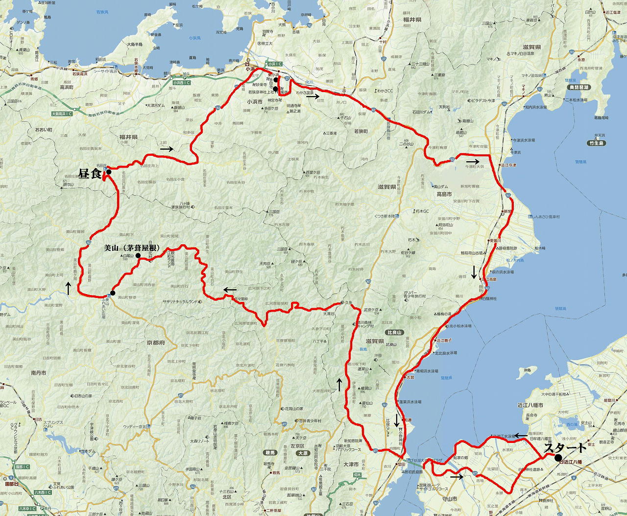 <ルート> 自宅→(湖岸道路)→野洲市→守山市→(琵琶湖大橋)→大津市堅田→(国道477号線)→途中峠→(国道367号線)→梅ノ木町→ (県道781号線)→(府道110号線)→久多→(府道38号線)→美山町→(道の駅「美山」)→(国道162号線)→(道の駅「名田庄」)→ 福井県小浜市→(国道27号線)→(若狭姫神社)→(若狭彦神社)→若狭西街道(農道)→若狭町→(国道303号線)→今津町→ (国道161号線)→(道の駅「藤樹の里あどがわ」)→堅田→(琵琶湖大橋)→(湖岸道路)→守山市→(国道477号線)→中主町→ 十王町→加茂町(給油)→帰宅 <データー> 走行距離:236.7km 燃費:約27.8km/L 天気:曇り 気温:18〜28度 ガソリン(1L):162円(ハイオク) 使用バイク:XL883N ILON