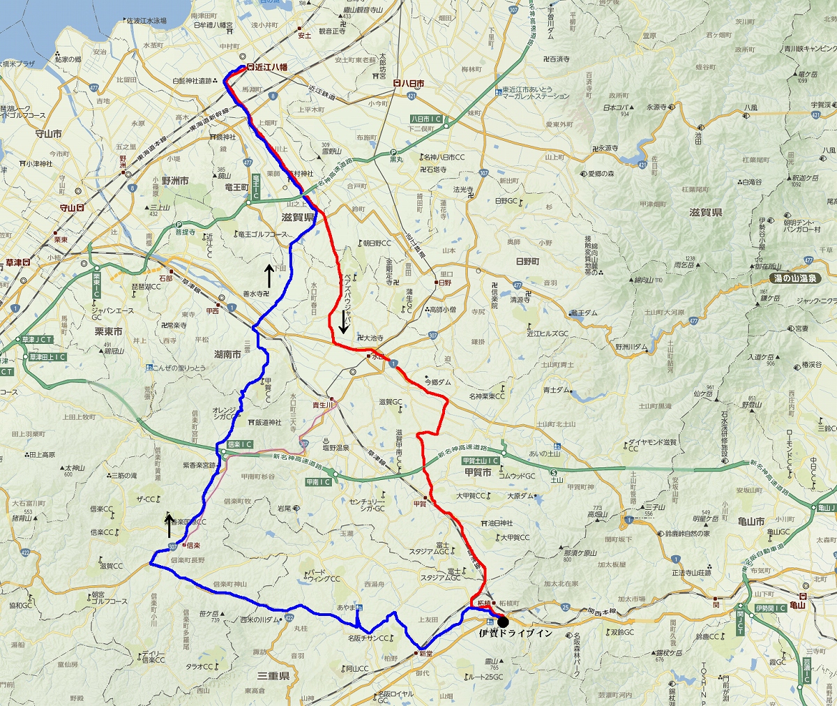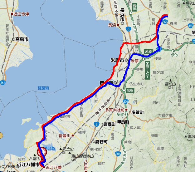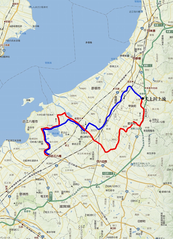 9:30頃に出発 近くのガソリンスタンドで給油。 県道2号線(朝鮮人街道)を使って彦根方面へ! 彦根市(南彦根駅)から国道8号線を使い米原市方面へ。 彦根市内で渋滞。 ※ 国道じゃなく湖岸道路を使えばよかった。(>_<) 米原市から国道21号線へ 数キロ走り伊吹山方面へ左折(コンビニでおにぎり&サンドイッチを買う) 県道19号線。 開けた農道! 気持ちいい〜〜 国道365号線を横切り山の中へ。(県道40号線) 本日の目的地、「姉川」上流、すっごく綺麗な川! 河原に降りて昼食。 あぜ道で蛇と遭遇。 ギャ〜! (T_T) Uターン 道の駅「伊吹の里」で買い物&トイレ休憩。 県道19号線を走行。 途中、走ったことの無い道を走行。(地名は「大鹿、山室」) 米原市の国道8号線に出た。 市内を走り琵琶湖湖岸道路へ。 彦根を経由。 15時52分 自宅に到着。