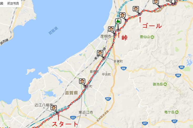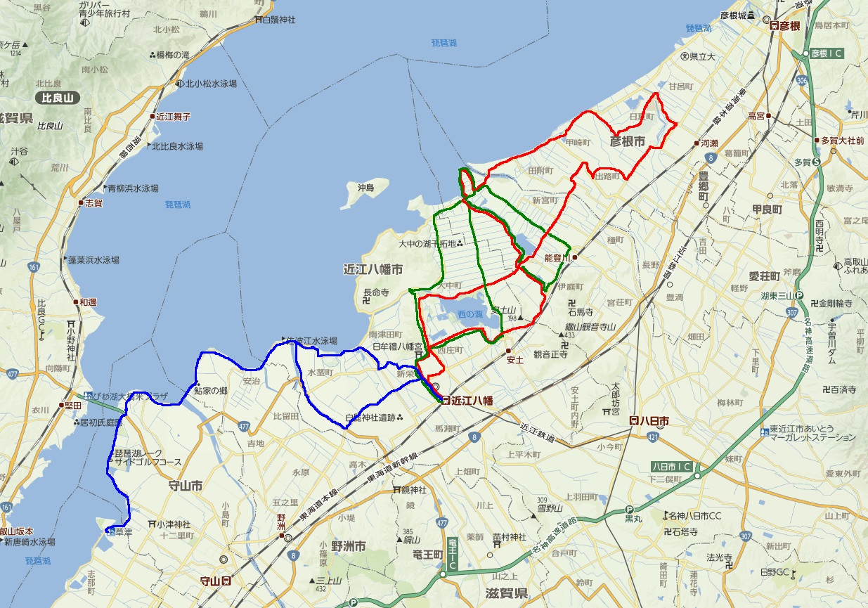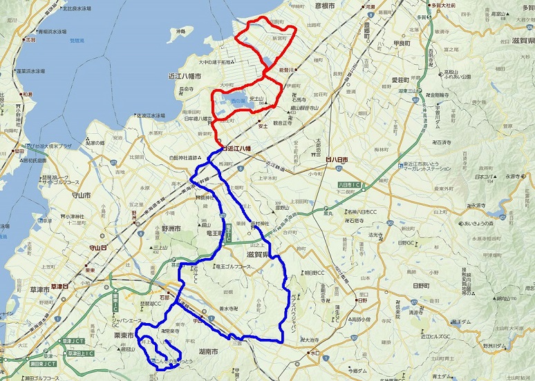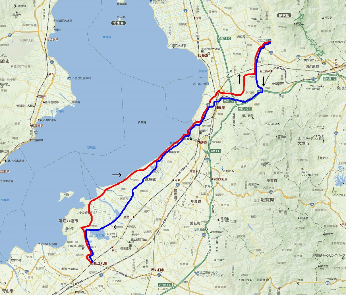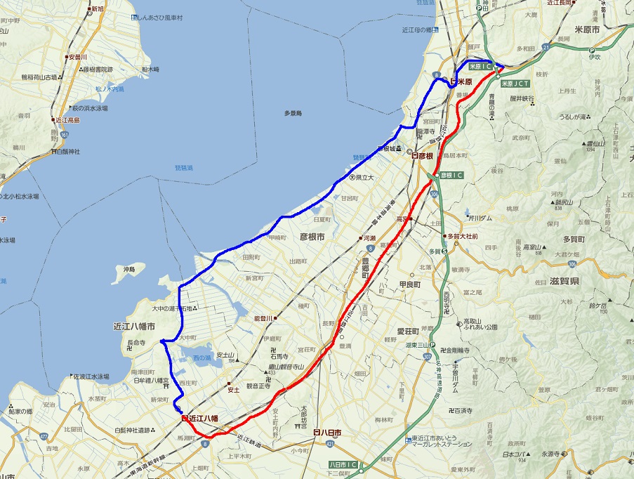 道の駅「湖北みずどりステーション」→米原市→道の駅「近江母の郷」→彦根市→東近江市→