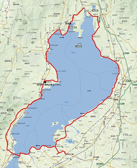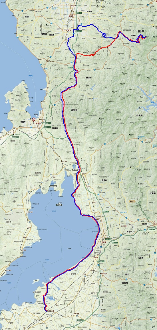道の駅「塩津街道あぢかまの里」→木之本町→(湖岸道路)→長浜市→