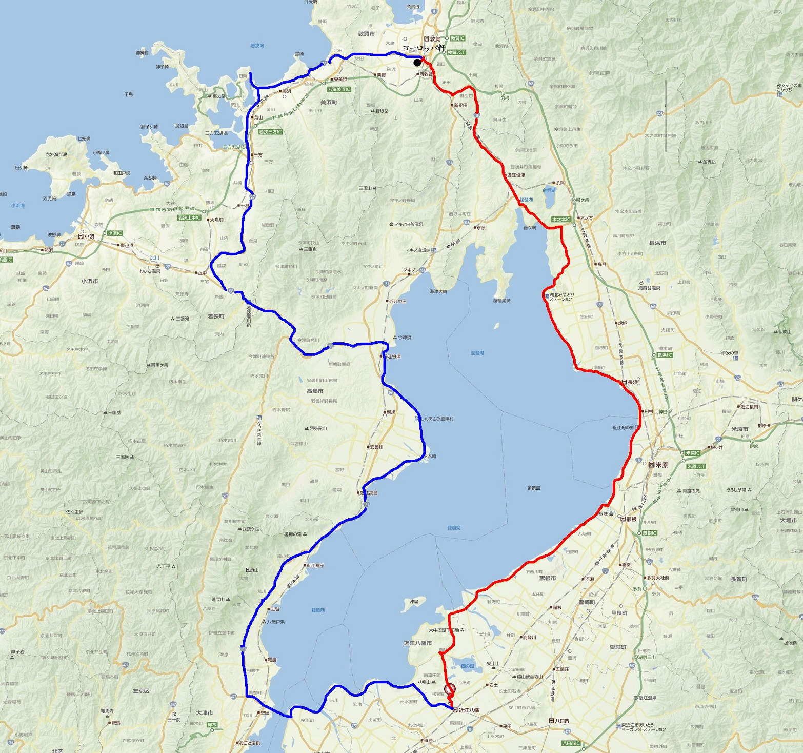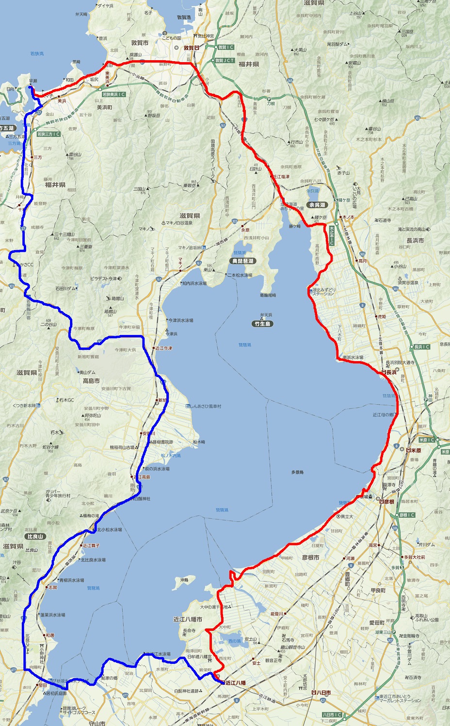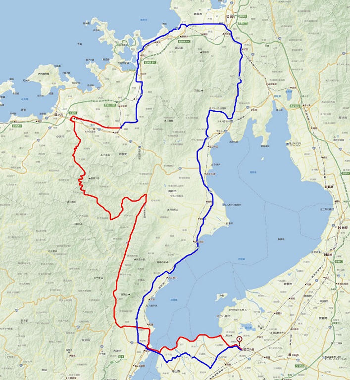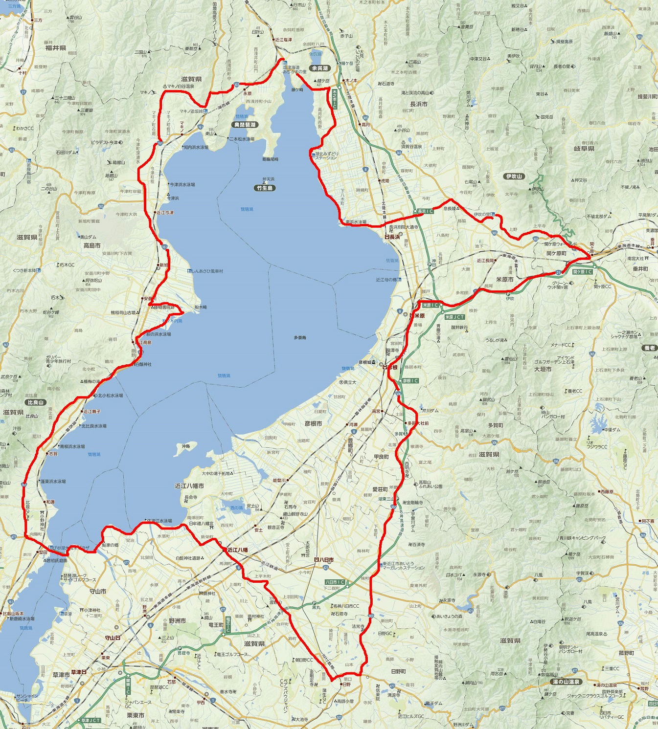 自宅→(湖岸道路)→東近江市→彦根市→長浜市→道の駅「湖北みずどりステーション」→