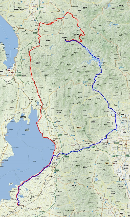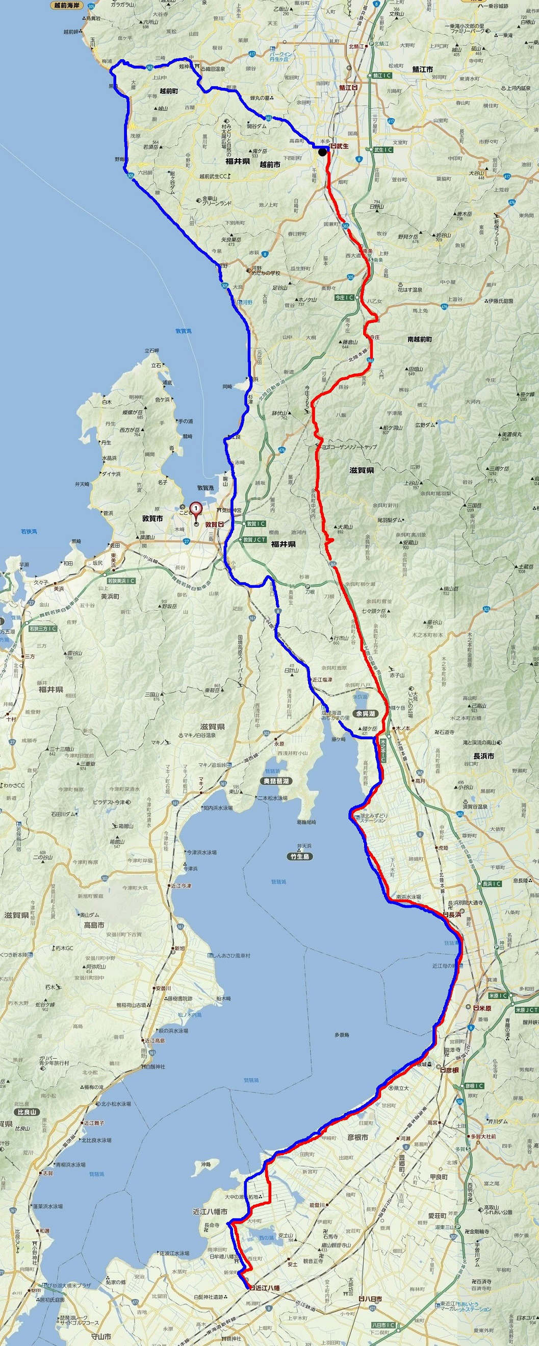 木之本町→北国街道(国道365号線)→敦賀市→越前市→(武生中央公園)→越前町織田→