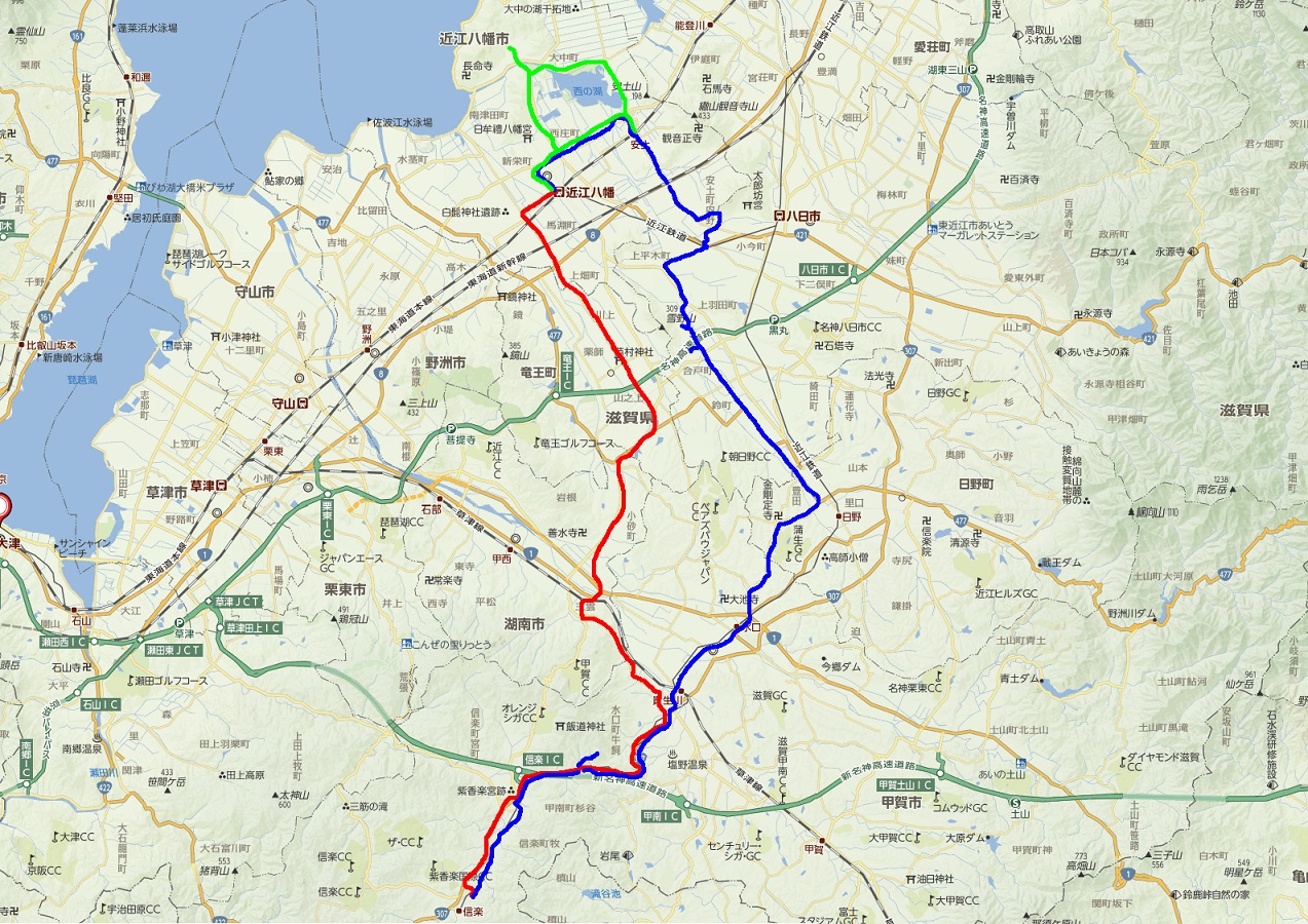 自宅→蒲生町→日野町→(国道1号線)→土山町→(鈴鹿峠)→関町→(関ドライブイン)→津市→