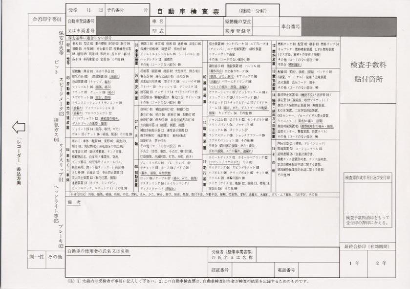 以上の検査を終えると「自動車検査票」に印字します。 |